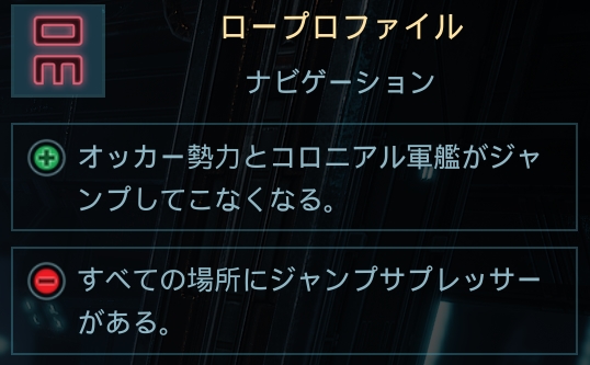 • ロープロファイル:ジャンプサプレッサーがあっても、オッカーの追手が現れなければノーダメージなので、単純に時間制限がなくなるだけです。